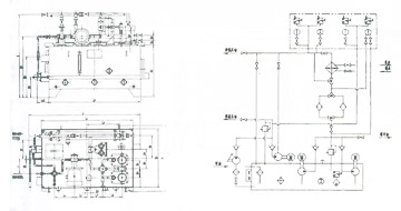 Before starting main machine ,starts the low pump ,when its low filling pressure reached normal ,stars the high pump which suction port is connected to the pipeline of low pump. The high oil through high check valve flows to the static pressure bearing .When the high pressure reached a curtain value ,starts the main machine ,slow runs or stops. After main machine running normally then stops the high pump (exception the low running ),but the low pump must operate ordinary . The low pump suction oil from tanker ,then sends it pass check valve ,twin barrel mesh filter , cooler to the static pressure bearing too ,to maintain the main machine running ordinary .After stopped main machine ,if want filling oil by high or low pump timely ,can control by time relay to lubricate the point interrupt.