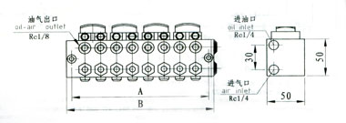 one line oil air lubrication device is consisted with one or more two line divider and a mix block.After distributed fix quantity in the divider the oil is entered to the lube point pushed non interruption by compression air.