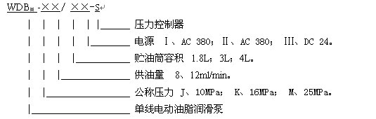 WDB※-□系列电动润滑泵是由电动机驱动减速器,经蜗轮、蜗杆和偏心轮带动柱塞作往复运动来抽吸与排出润滑剂。它在贮油筒中采用了螺旋板,将油脂强制挤压到泵体的吸油口,同时排除了吸油口周围油脂中的气体,达到了无气穴吸油的效果。本泵采用柱塞式调压阀来控制泵的工作压力,保护其工作安全,并设有压力控制器用以控制系统压力超载时指示发讯。