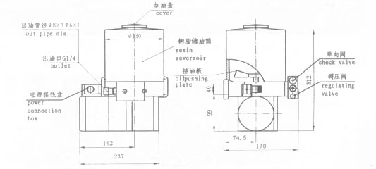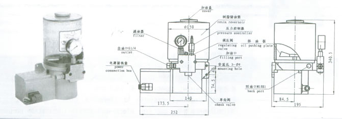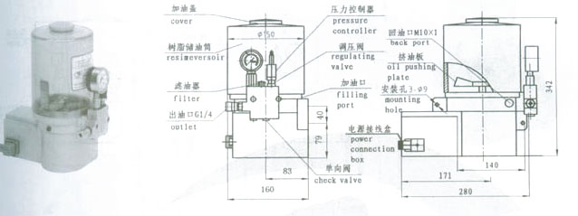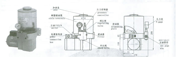 | 型号 | 公称压力MPa | 公称排 ml/min | 贮油筒容积 L | 管径 mm | 压力控制器 | 重量 kg | |
